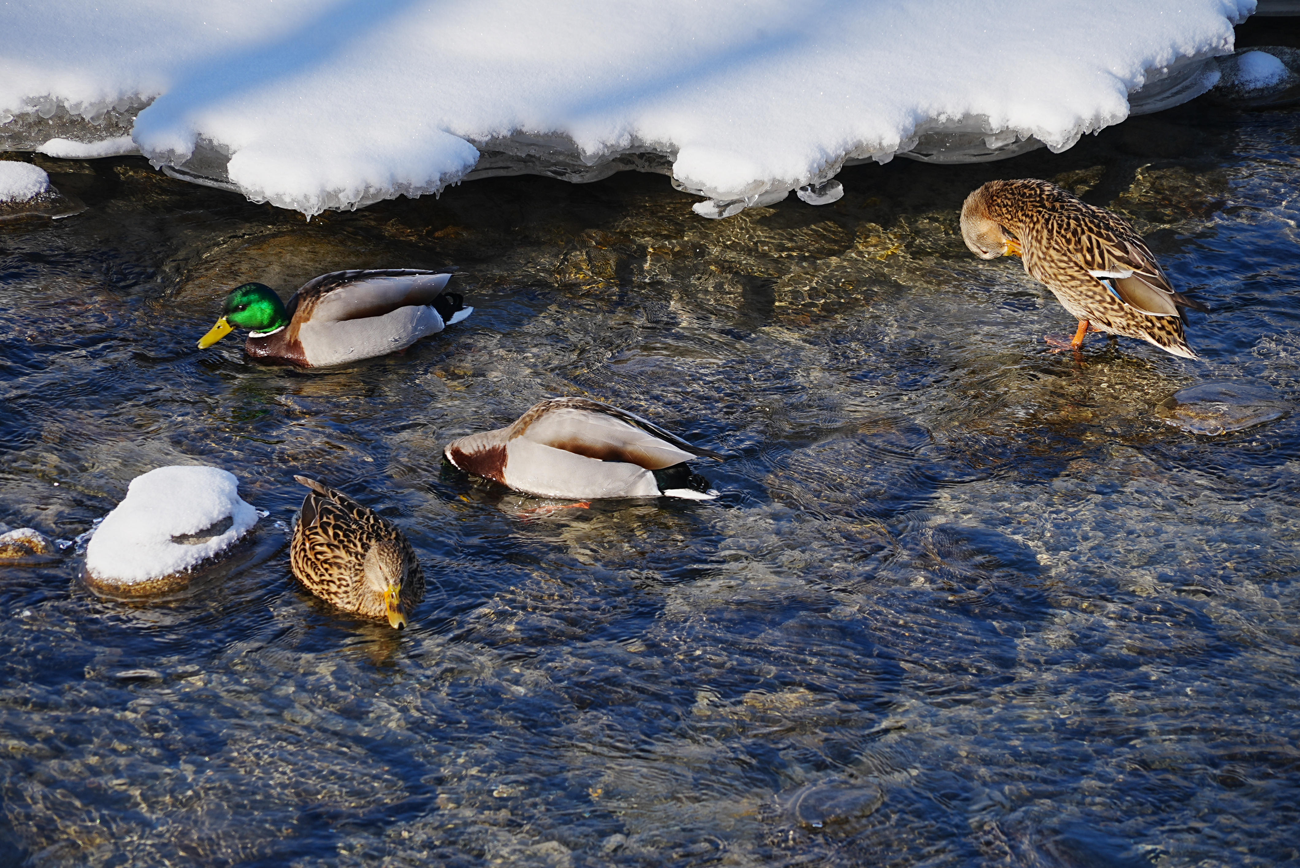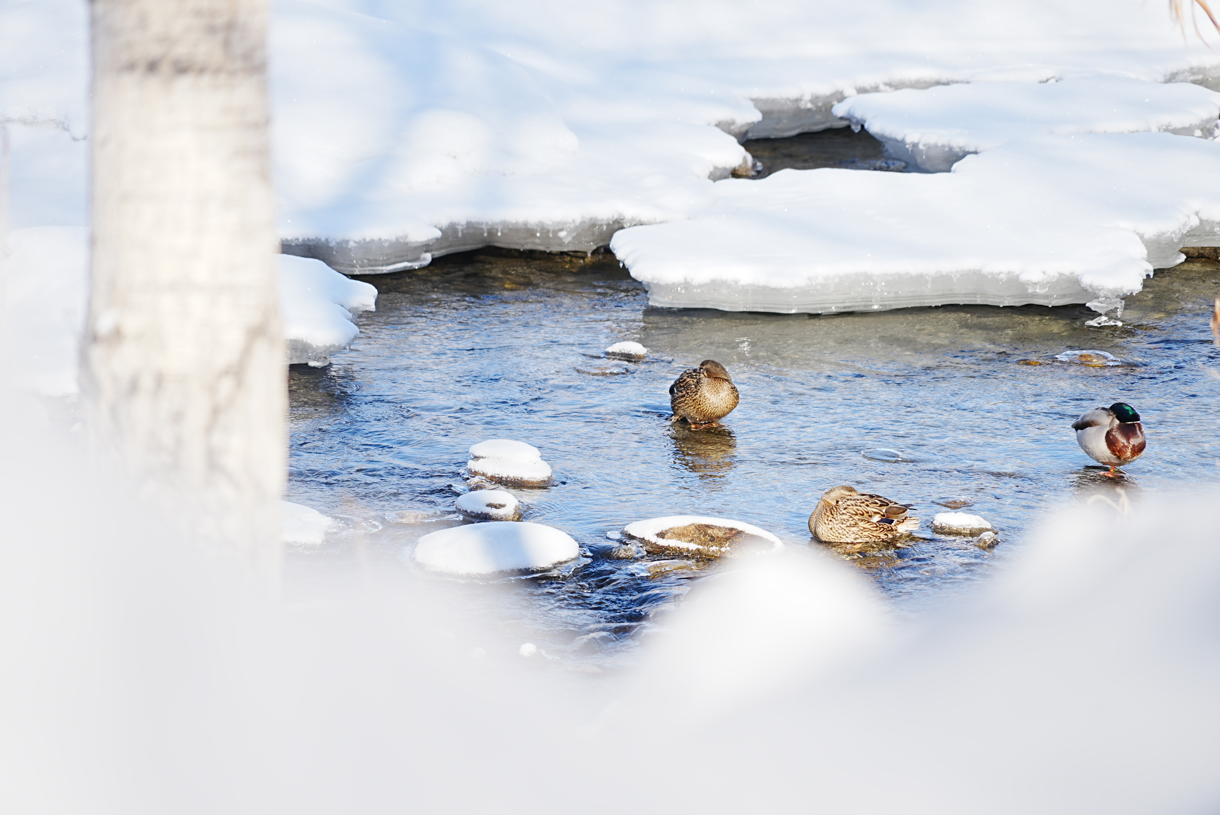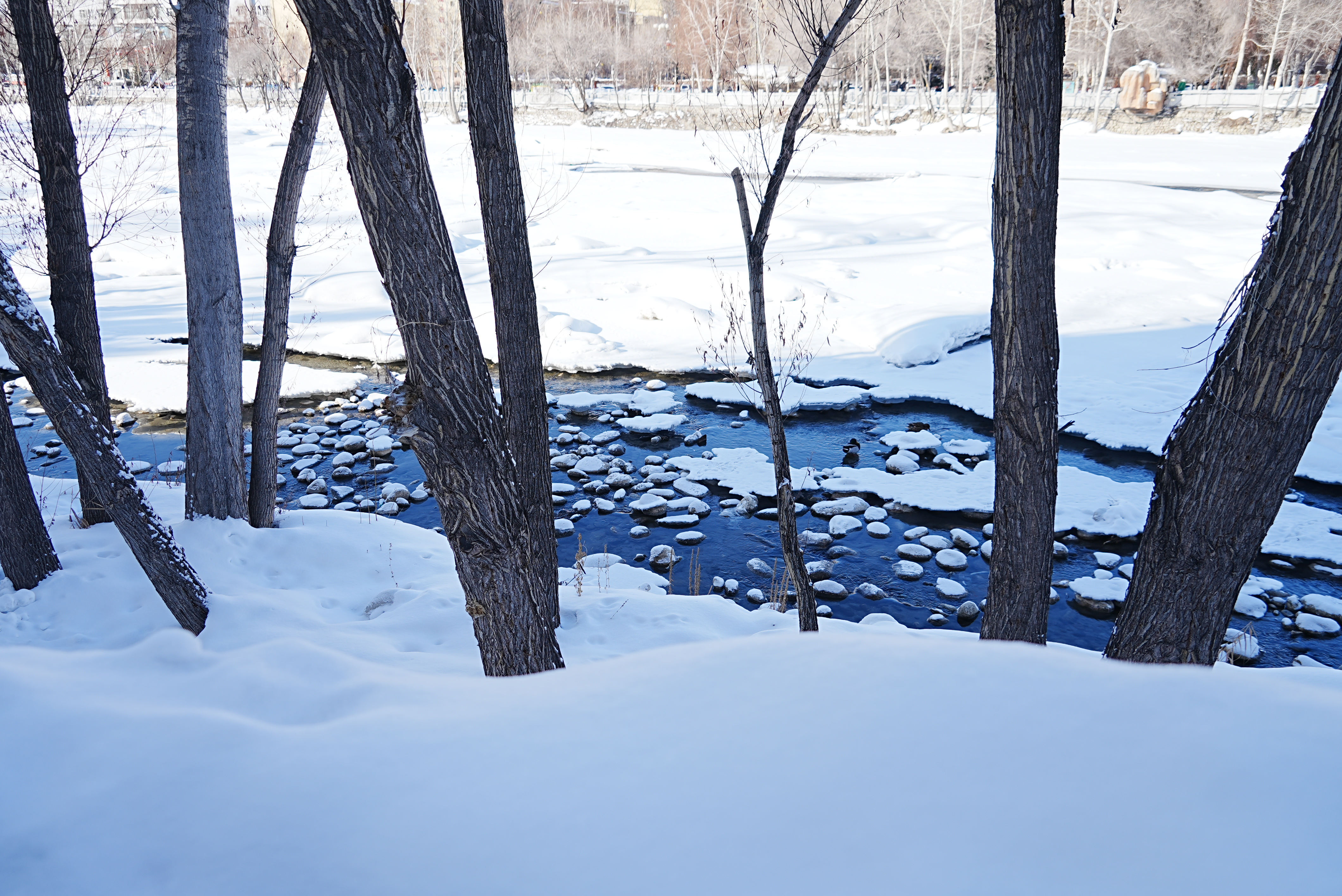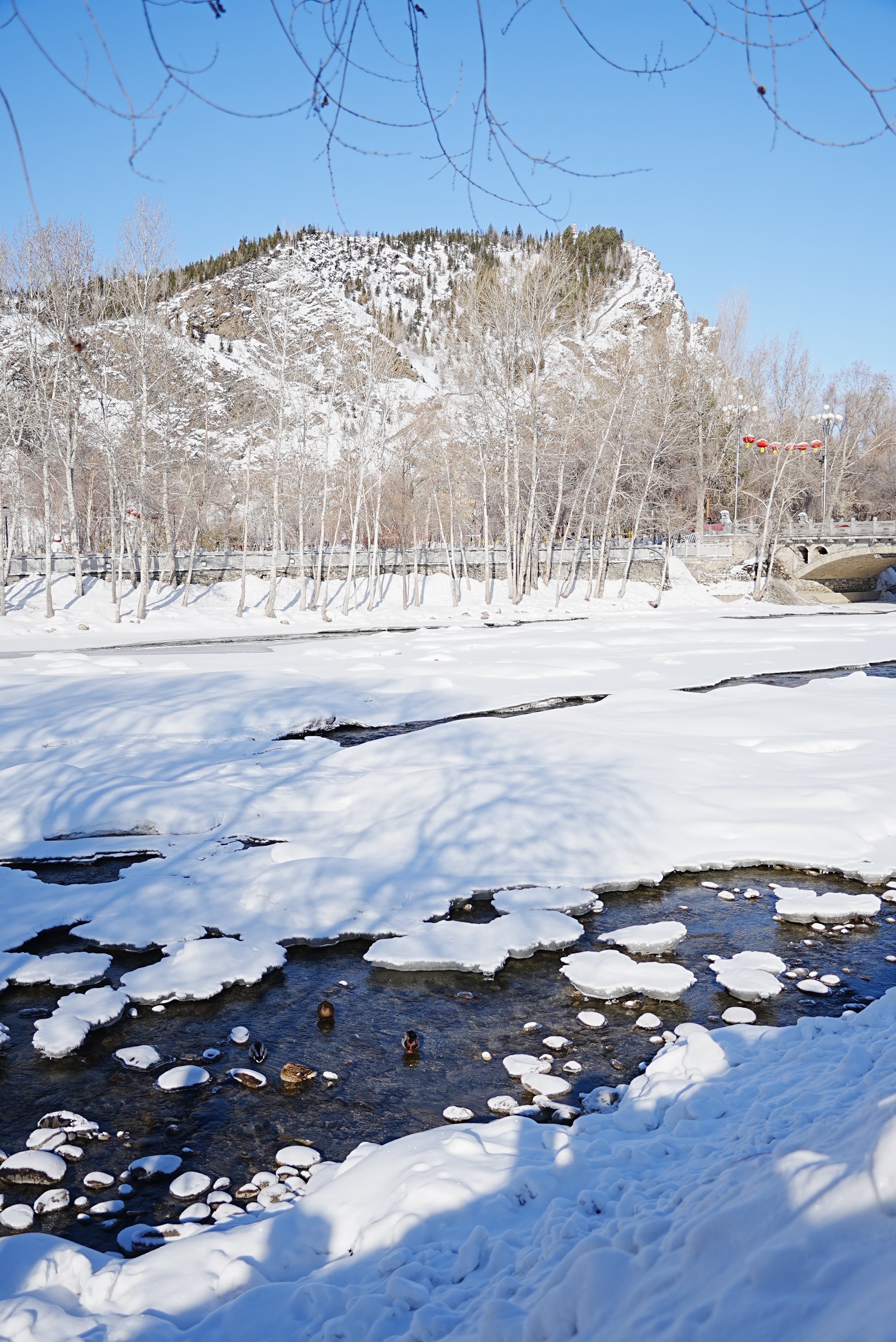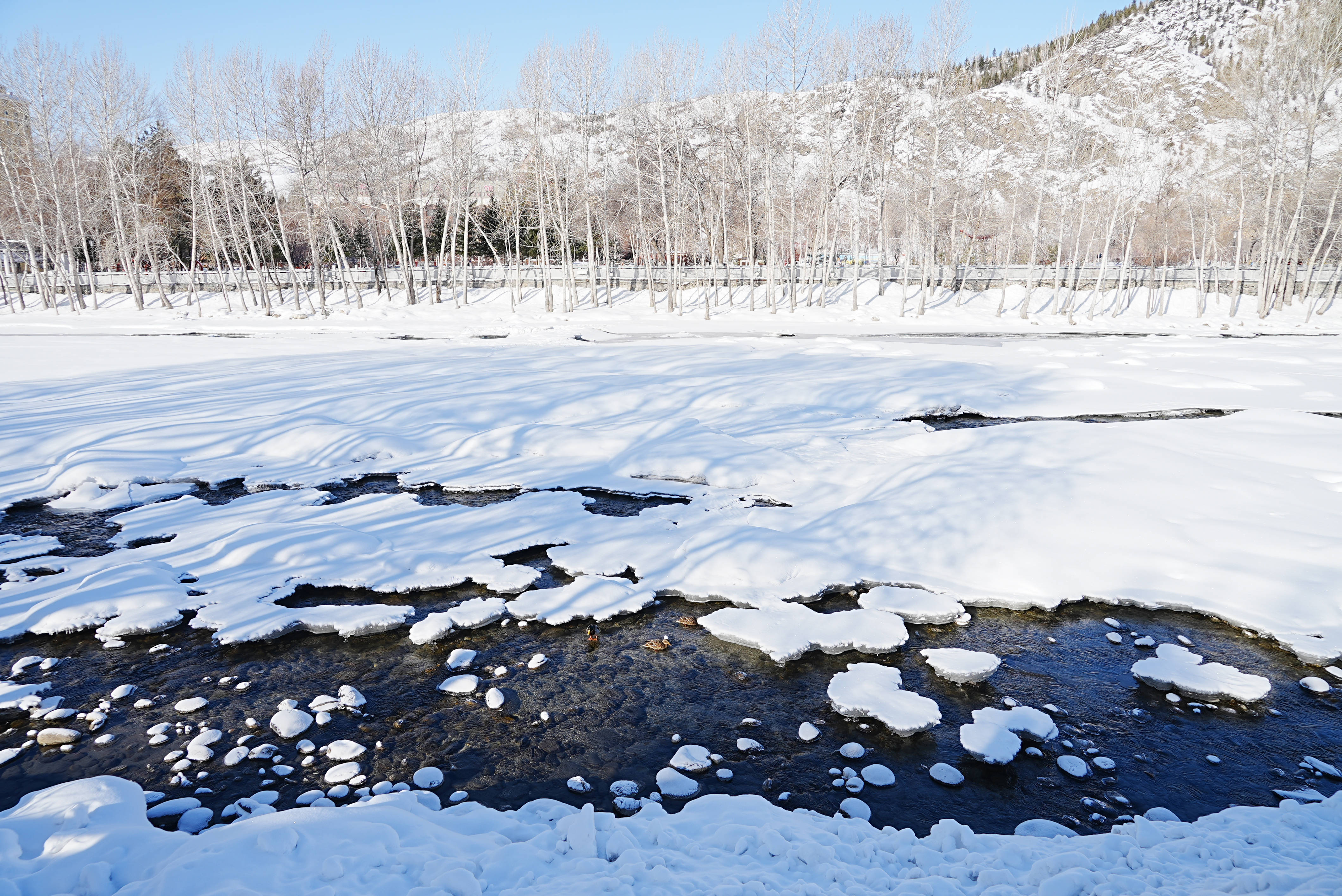 3月4日,新疆阿勒泰市的克兰河畔,冬意未尽,冰雪尚未完全消融。碧波微漾的河水中,三五成群的野鸭静静休憩。白雪点缀河岸,冰层映着天光,绿头鸭穿梭其间,宛如一幅生动的“寒鸭戏水图”,为这条穿城而过的河流增添了几分早春的意趣。