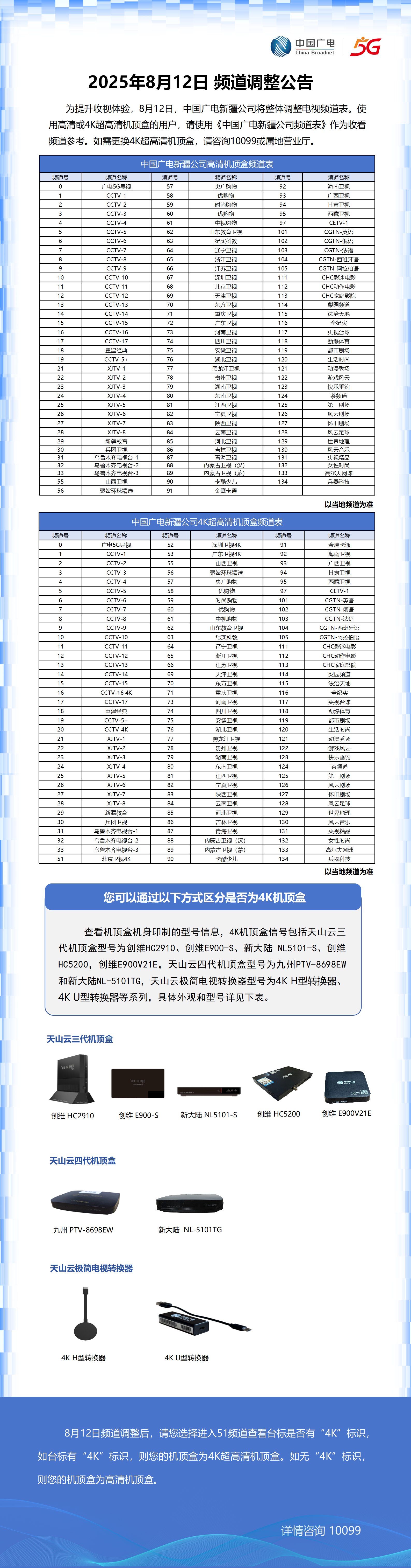 【重要通知】2025年8月12日中国广电新疆公司频道调整公告!