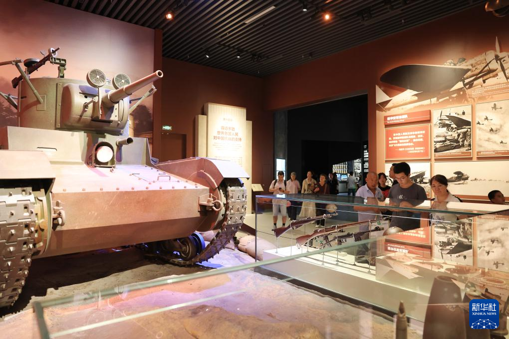 7月8日,参观者在中国人民抗日战争纪念馆参观《为了民族解放与世界和平》主题展览。新华社记者 张晨霖 摄