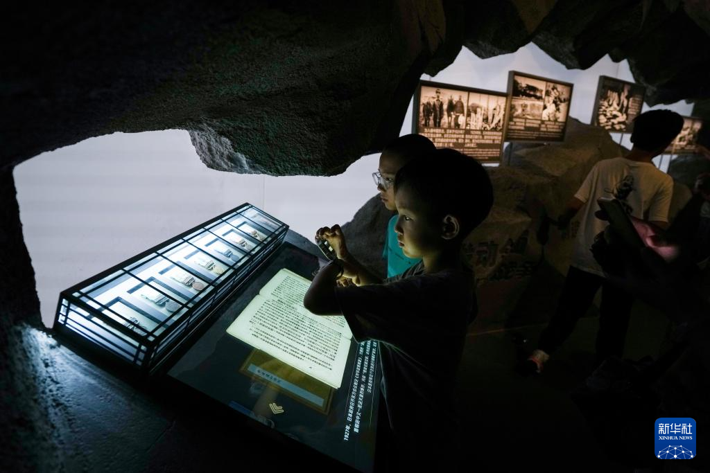 一名小朋友在中国人民抗日战争纪念馆《为了民族解放与世界和平》主题展览参观(7月22日摄)。新华社记者 鞠焕宗 摄