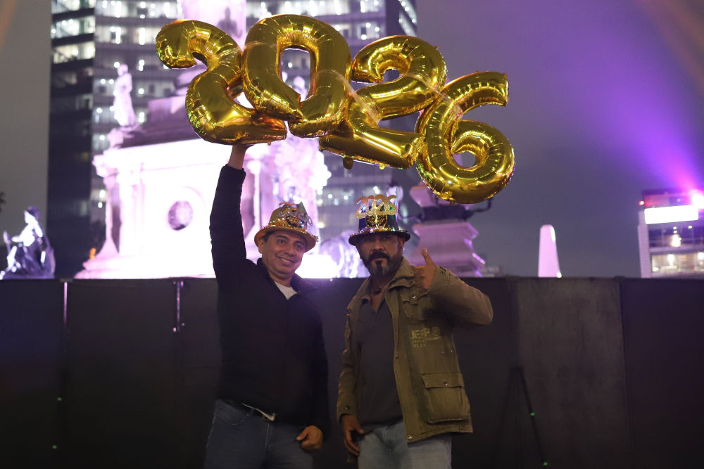2025年12月31日,人们在墨西哥首都墨西哥城改革大道参加跨年活动,迎接2026年的到来。
