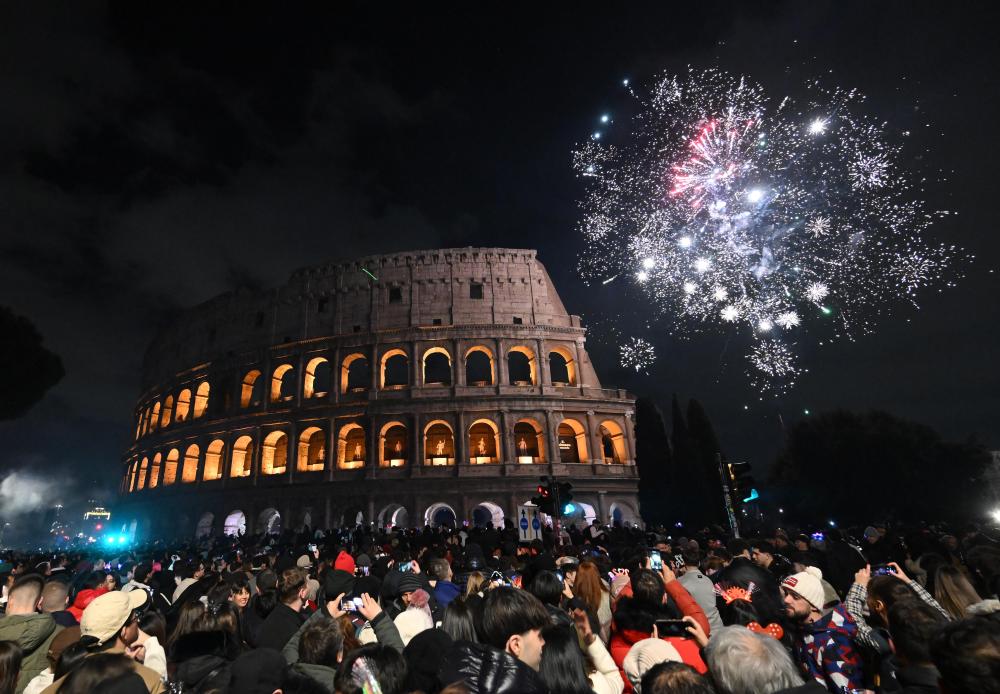 2026年1月1日,人们在意大利罗马斗兽场迎接新年。