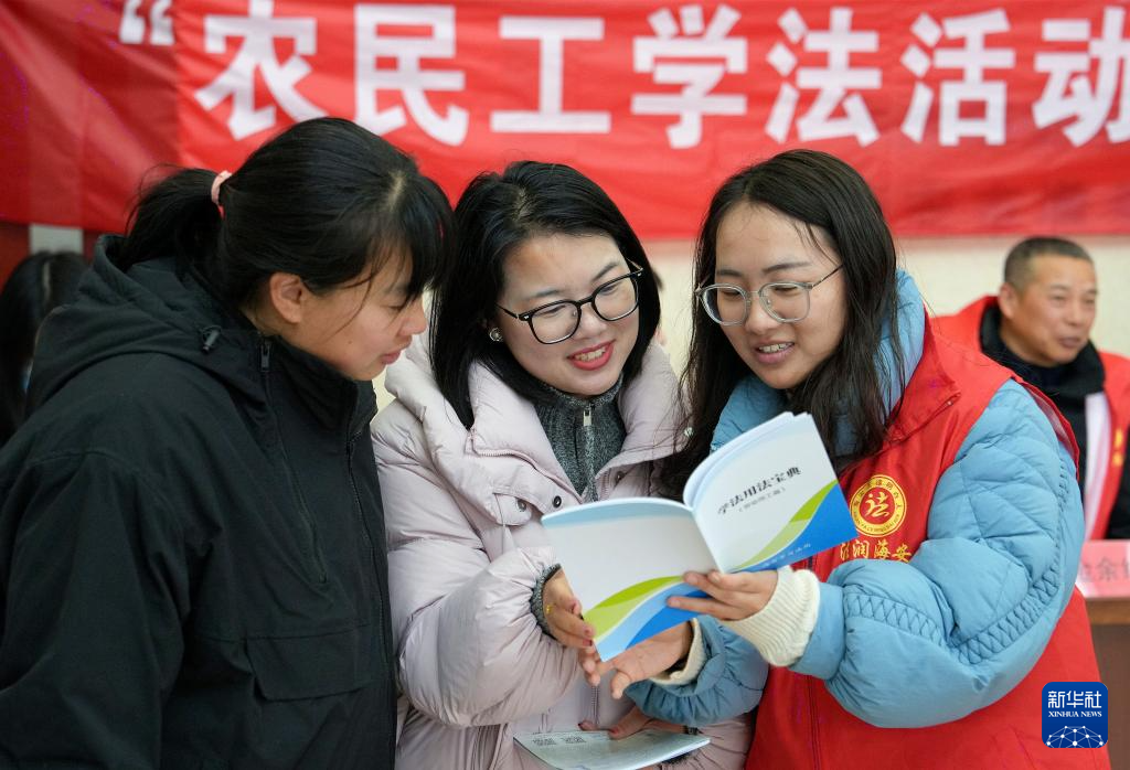 2月26日,志愿者在江苏省海安市墩头镇招聘活动现场向求职者宣传劳动用工相关法律法规。新华社发(周强摄)