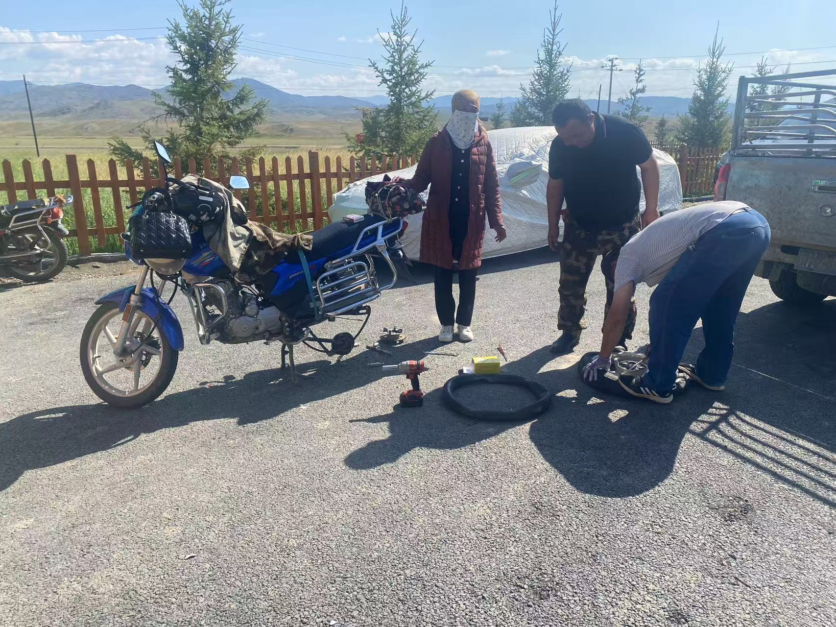 牧民在幸福驿站维修摩托车。(青河县农业农村局提供)