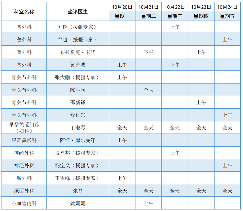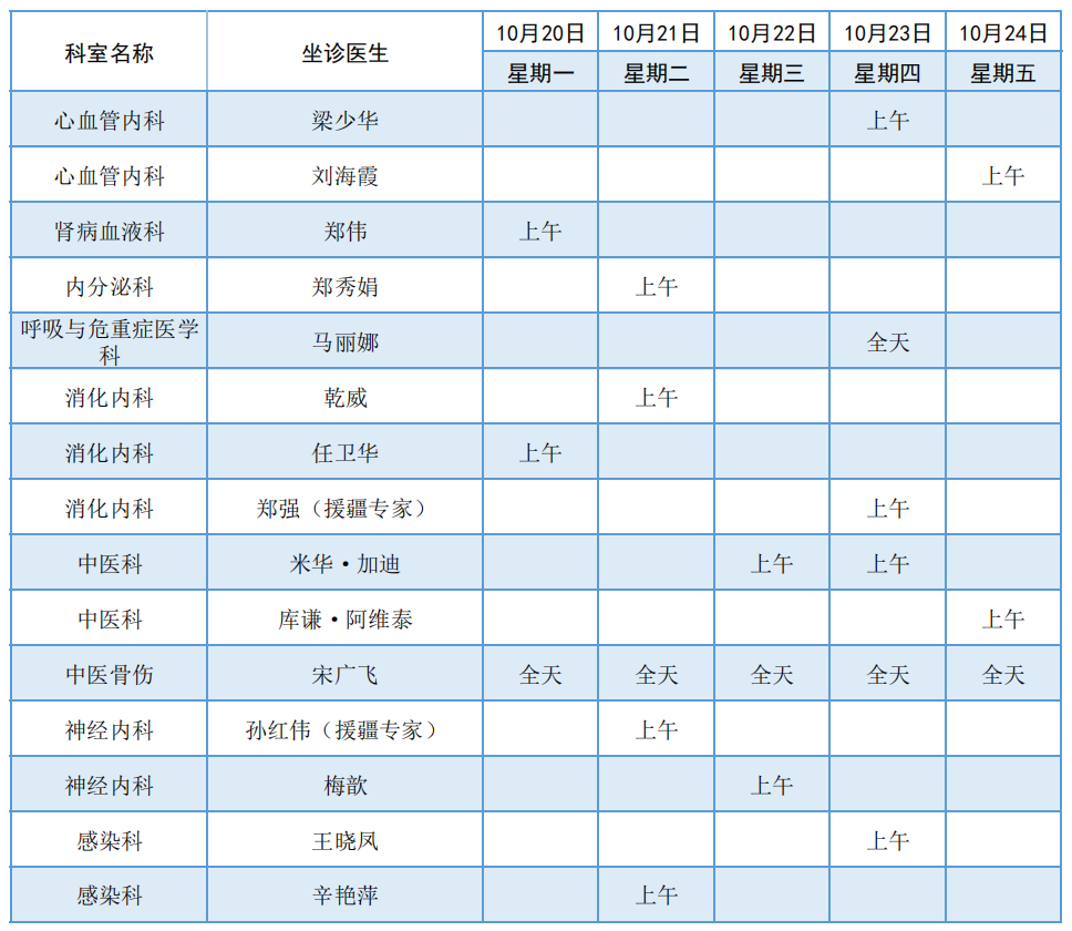 阿勒泰地区人民医院10月20日至24日专家门诊出诊信息