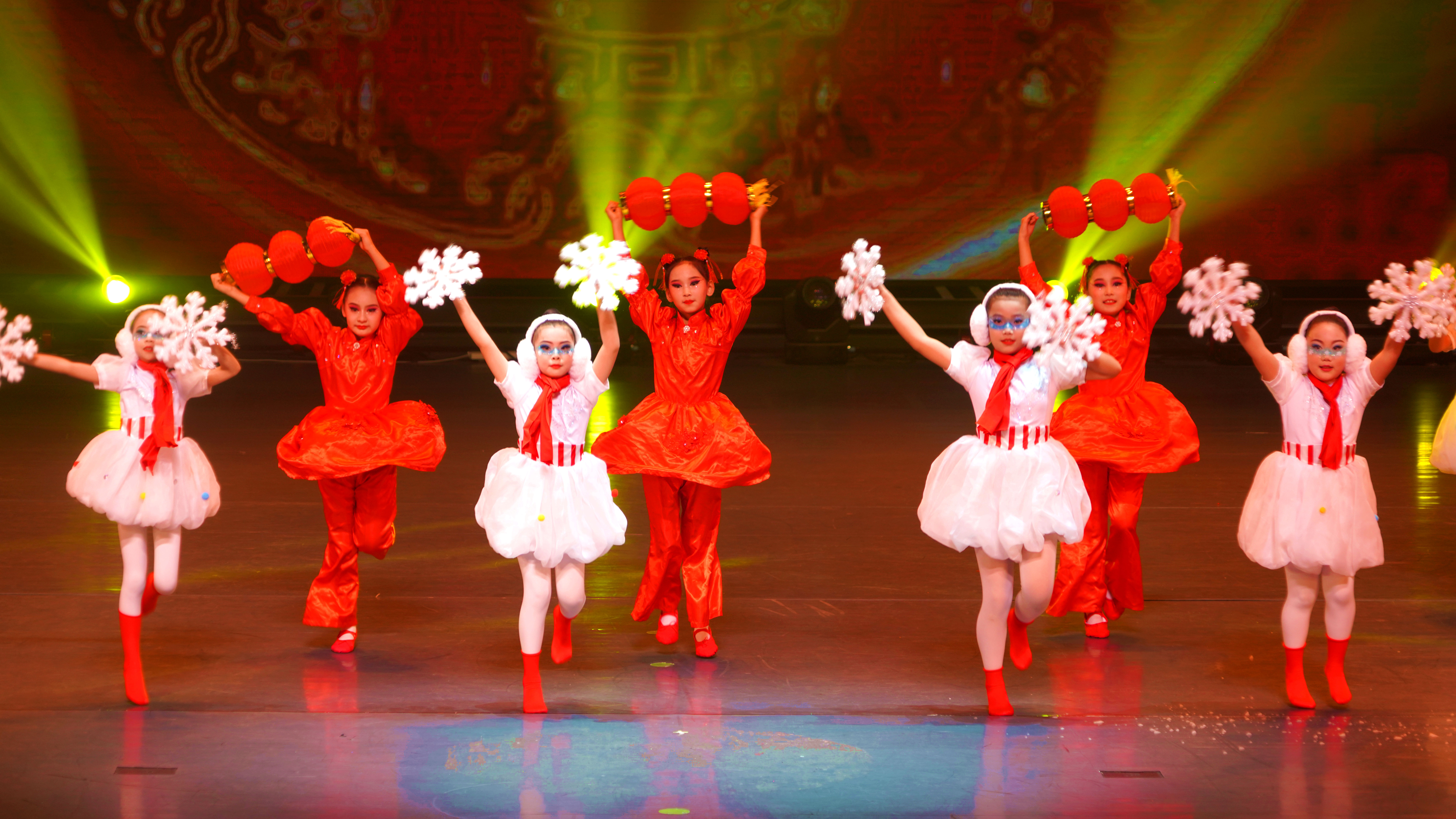 晚会在热闹喜庆的开场舞《欢欢喜喜过大年》中拉开帷幕,小演员们身着鲜艳服饰,伴着欢快节奏起舞,浓浓年味扑面而来。《雪都骏影》《上春山》《马年说马》《US酷舞小子闹新春》等14个节目轮番上演。整场晚会以“美育润雪都·童心绽芳华”为主题,涵盖歌曲、相声、街舞、器乐、诗歌朗诵等形式,节目编排兼具艺术性、观赏性与地域特色,充分展现了孩子们扎实的艺术功底与蓬勃的青春活力。