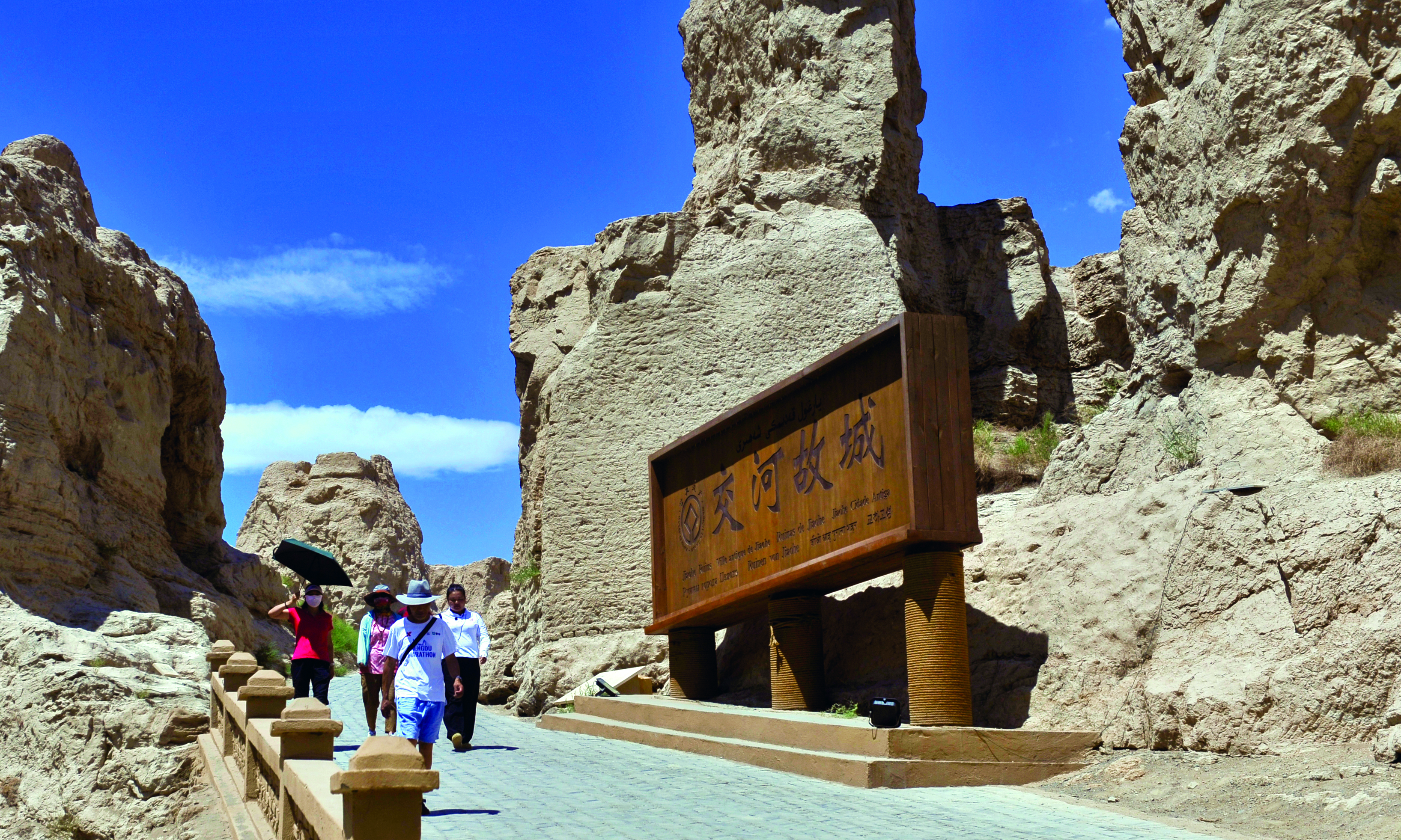 游客在交河故城景区参观。王禹摄