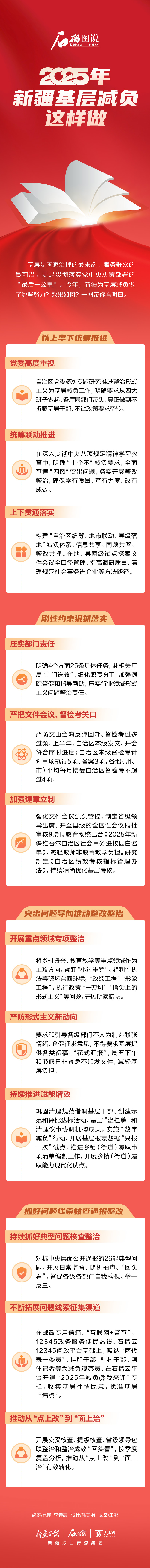 基层是国家治理的最末端、服务群众的最前沿,更是贯彻落实党中央决策部署的“最后一公里”。今年,新疆为基层减负做了哪些努力?效果如何?一图带你看明白。