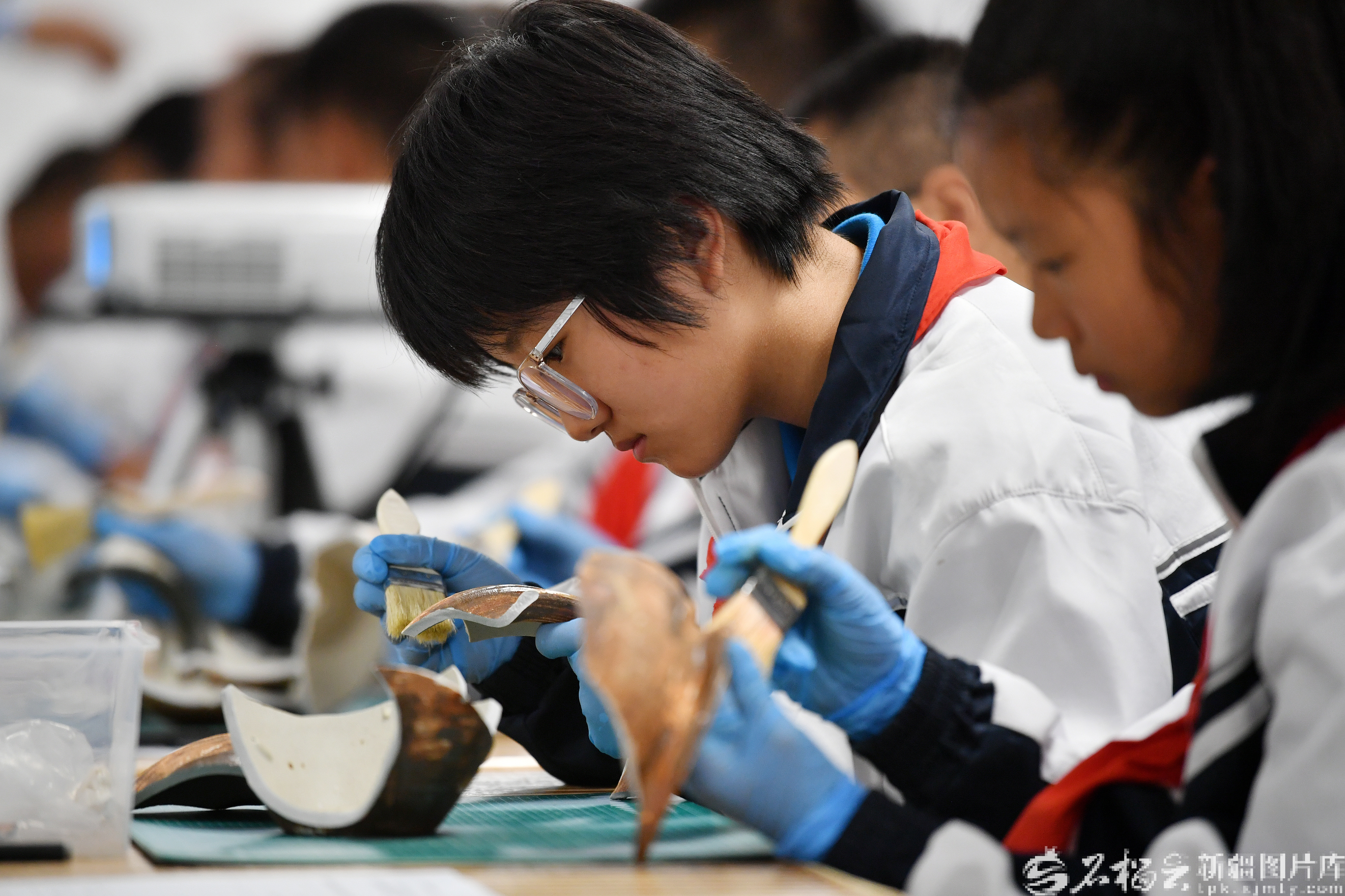 石榴云/新疆日报讯(记者 邹懿摄影报道)“这是我第二次作为小小修复师体验‘修复’陶器,在完成清理、拼接、粘连的步骤中,我仿佛和唐朝的陶器工匠、戍边军勇有了一次隔空对话。”9月9日,13岁的吉木萨尔县第三中学学生李瑞雪在北庭故城研学基地说。