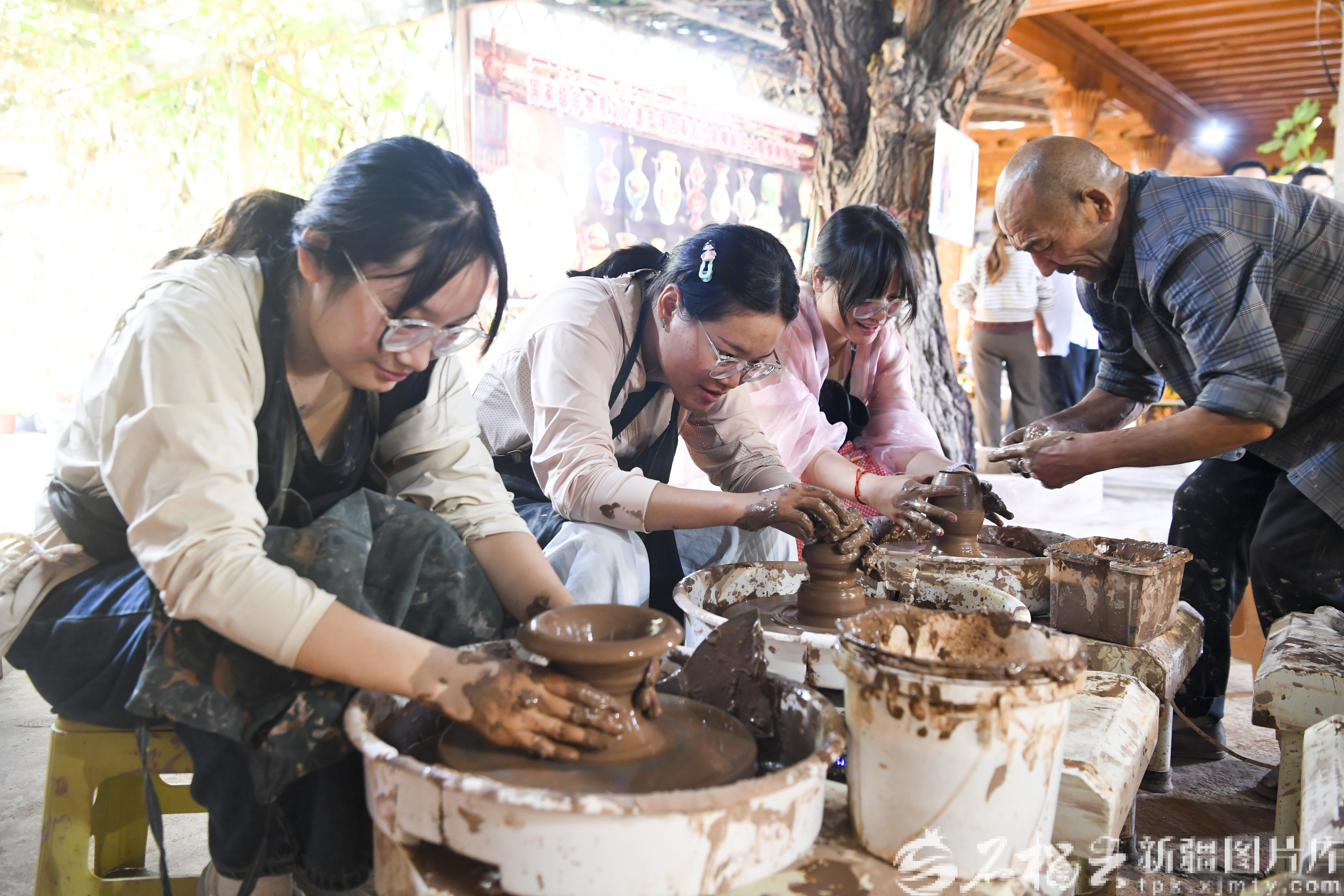砥砺奋进七十载 天山南北谱华章丨非遗游火热:游客在英吉沙体验土陶、小刀制作