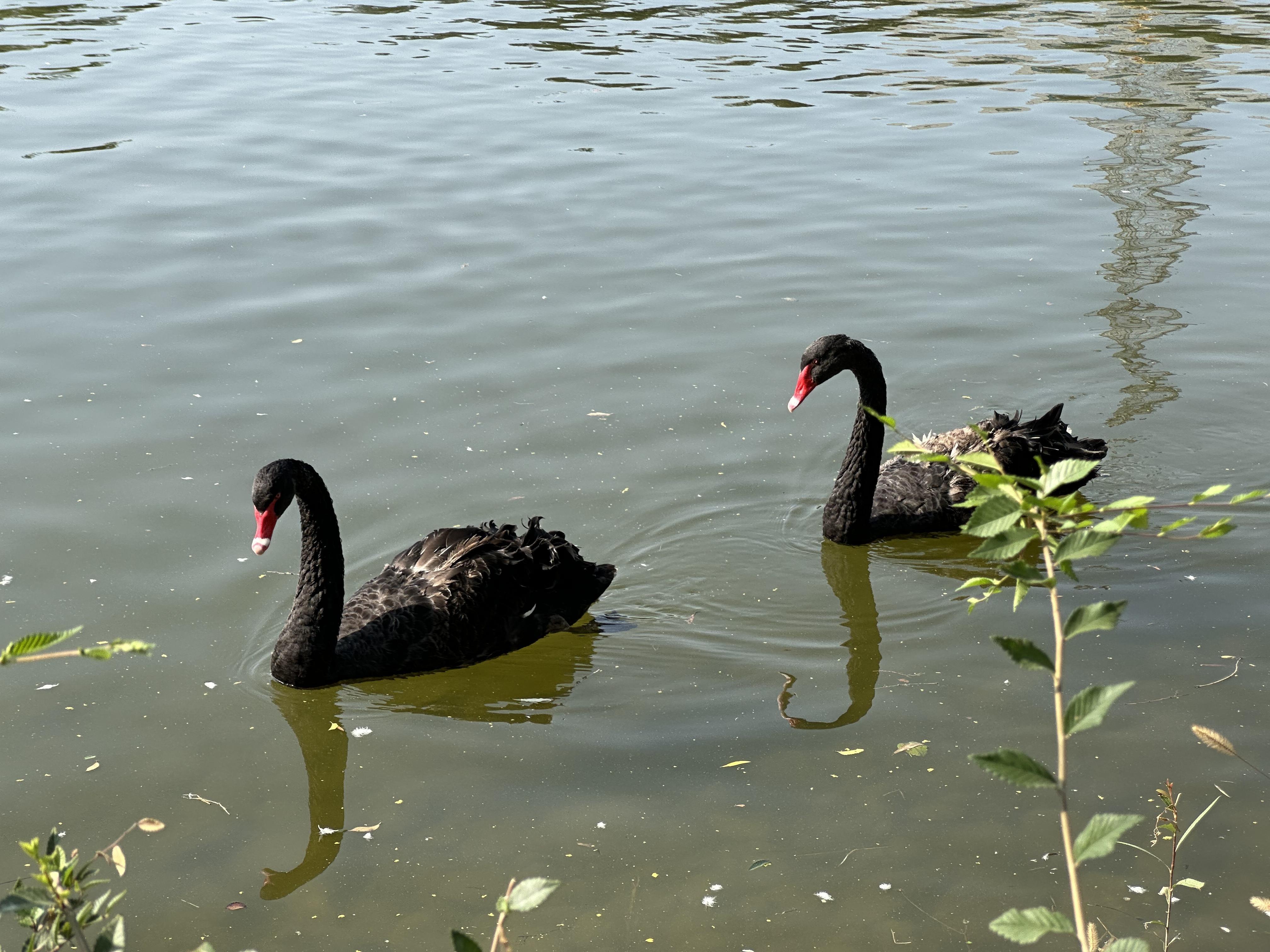 9月8日,在位于新疆乌鲁木齐的八一钢铁集团有限公司,天鹅在西域源天鹅湖嬉戏。科技日报记者 张佳欣摄