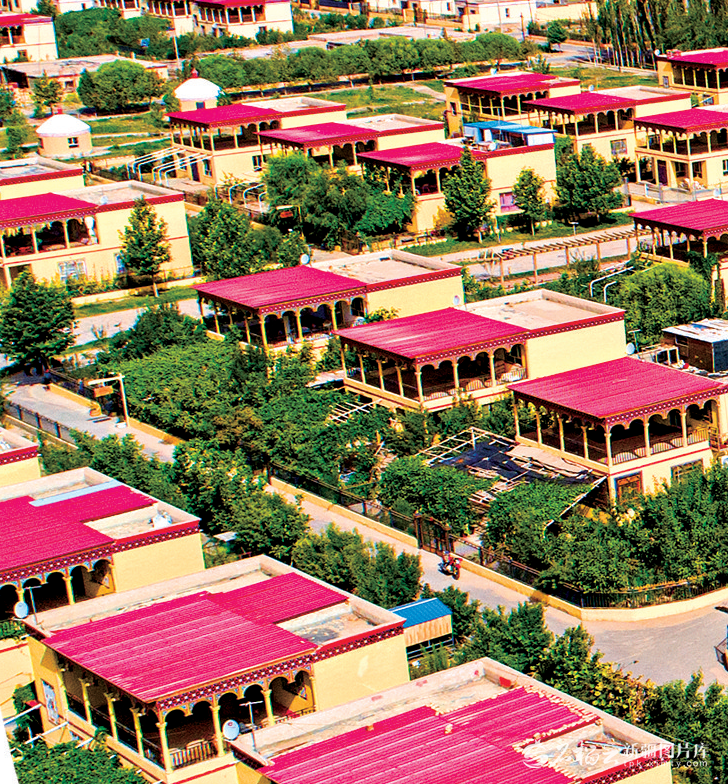 7月10日,泽普县美丽乡村一角(无人机摄)。金炜摄