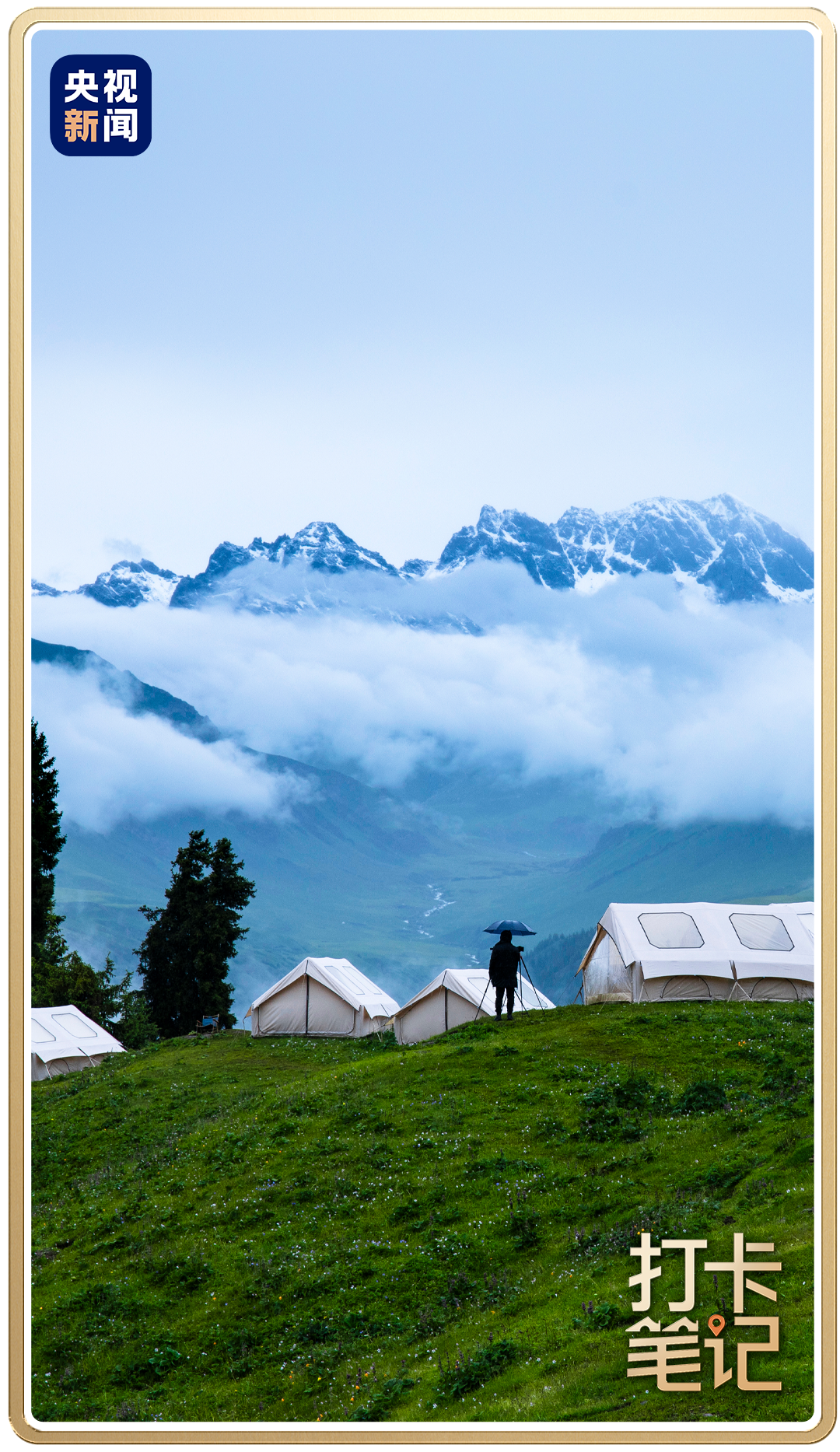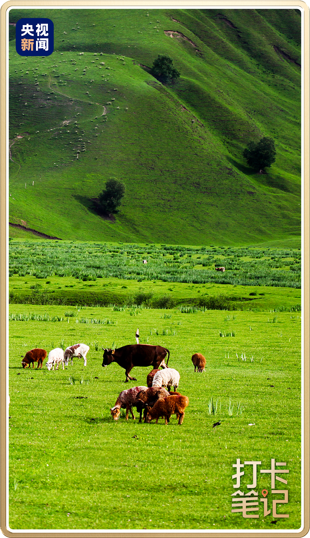 溪边牛羊悠然,毡房散落如星。伊犁大大小小的草原是游客和摄影师的天堂。