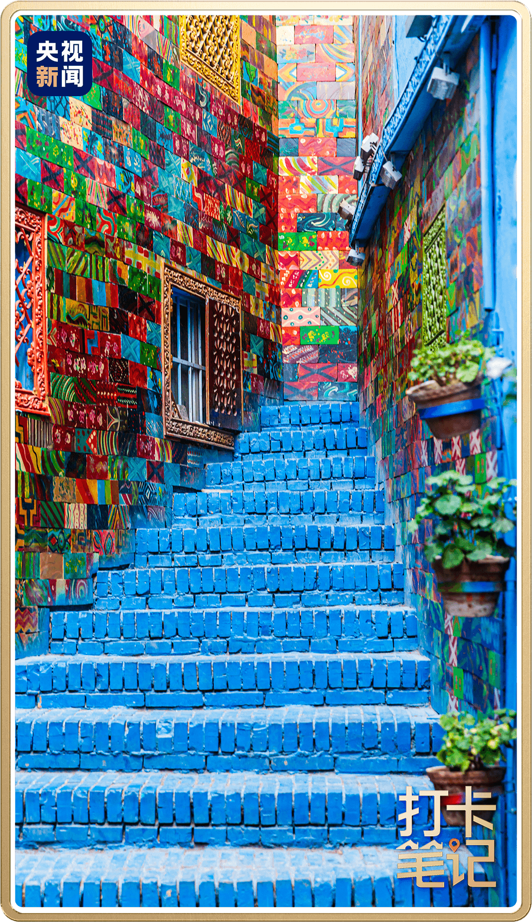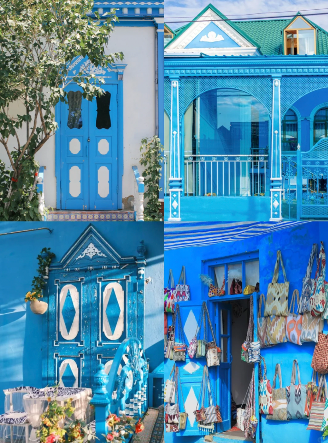 在伊宁,有一个童话小镇——喀赞其,到处是蓝色为主色调的房屋,不用导航和攻略,迎着鲜艳的伊宁色,一逛就是一天。
