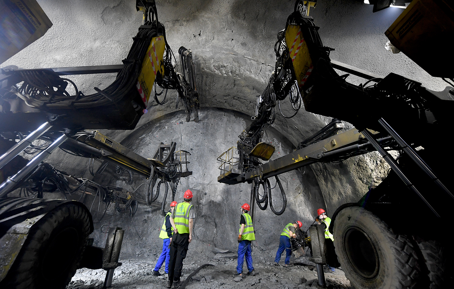 中交第二公路勘察设计研究院有限公司天山胜利隧道设计负责人彭文波介绍,隧道采用“主洞+服务隧道”设计,即在两个主洞之间增设一条服务隧道,服务隧道使用硬岩掘进机(TBM)领先掘进施工,进而为左右主洞增加工作面,横向将整条隧道“切割”成多个段隧道滚动施工,工期由常规“两端掘进”施工的10年缩短至4年多。