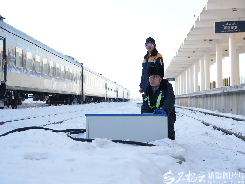 2月25日,阿勒泰火车站。K9766次列车停靠在站台上,往来的旅客络绎不绝,奎屯车务段阿勒泰站客运上水员王大震和防护员一起,走在站场的雪地上,脚下传来一阵阵“咯吱”声,他们即将开始上水作业。