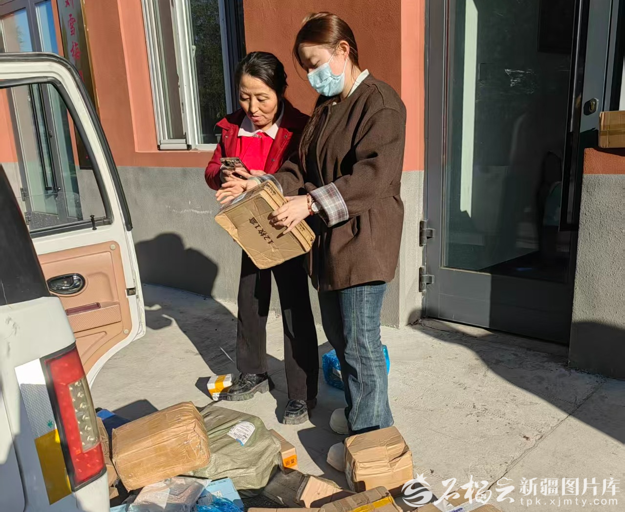 刘雪梅(左)和女儿整理包裹。本人供图