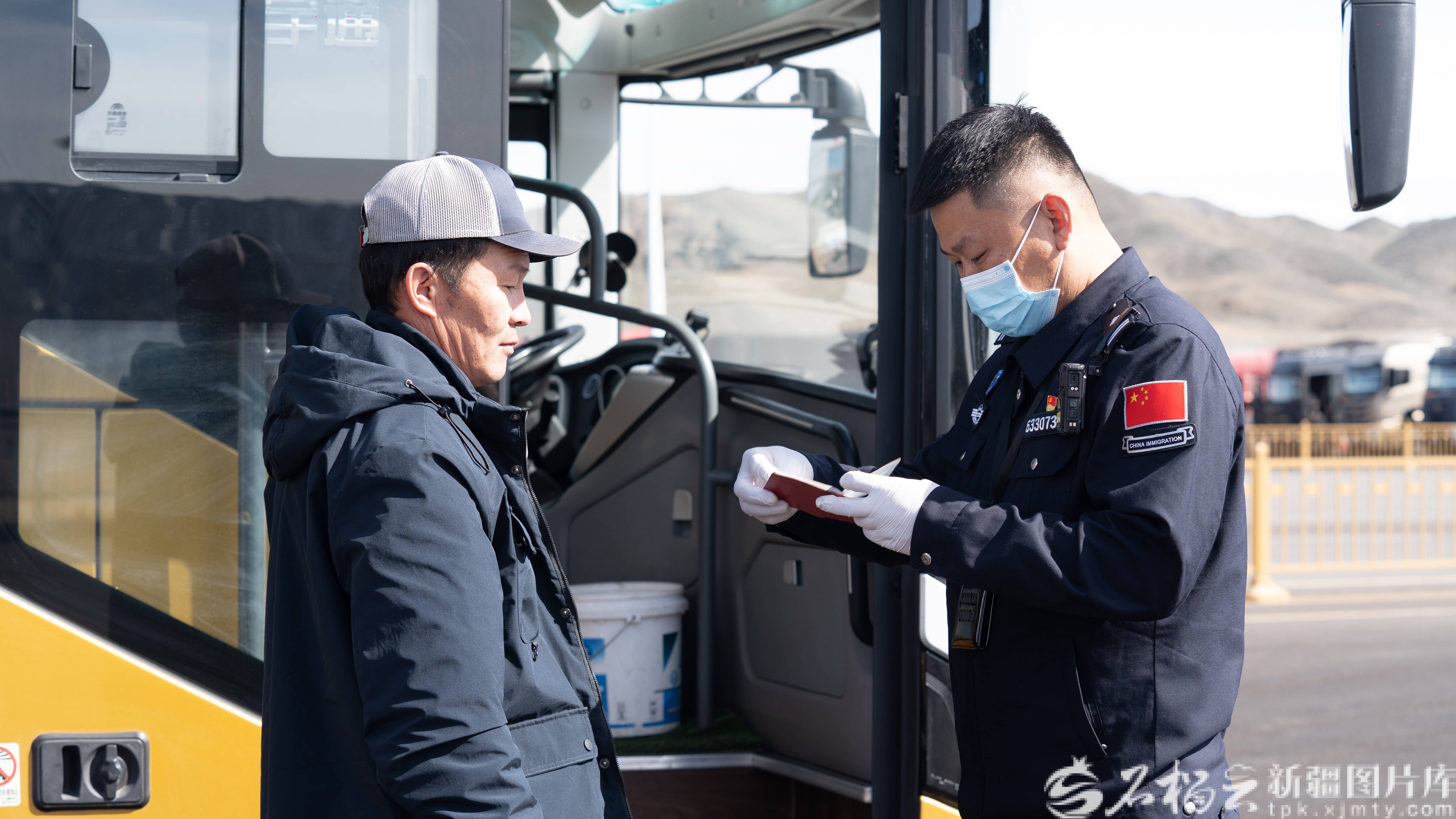 3月31日,塔克什肯出入境边防检查站民警在验放入境司机。常峥晓 摄
